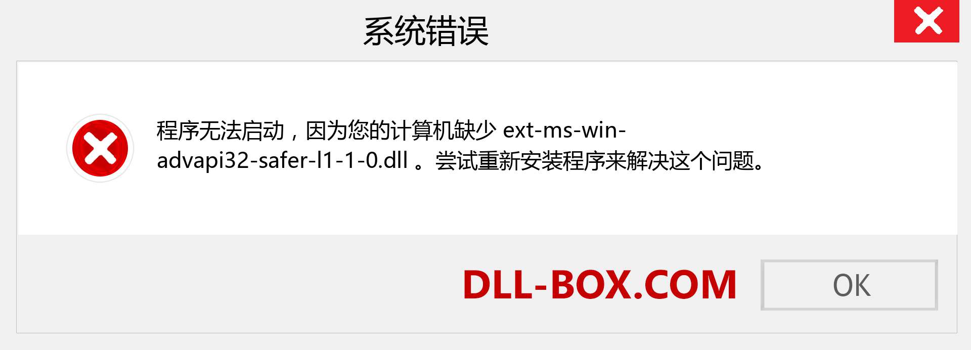7. ext-ms-win-advapi32-safer-l1-1-0.dll 错误加载。